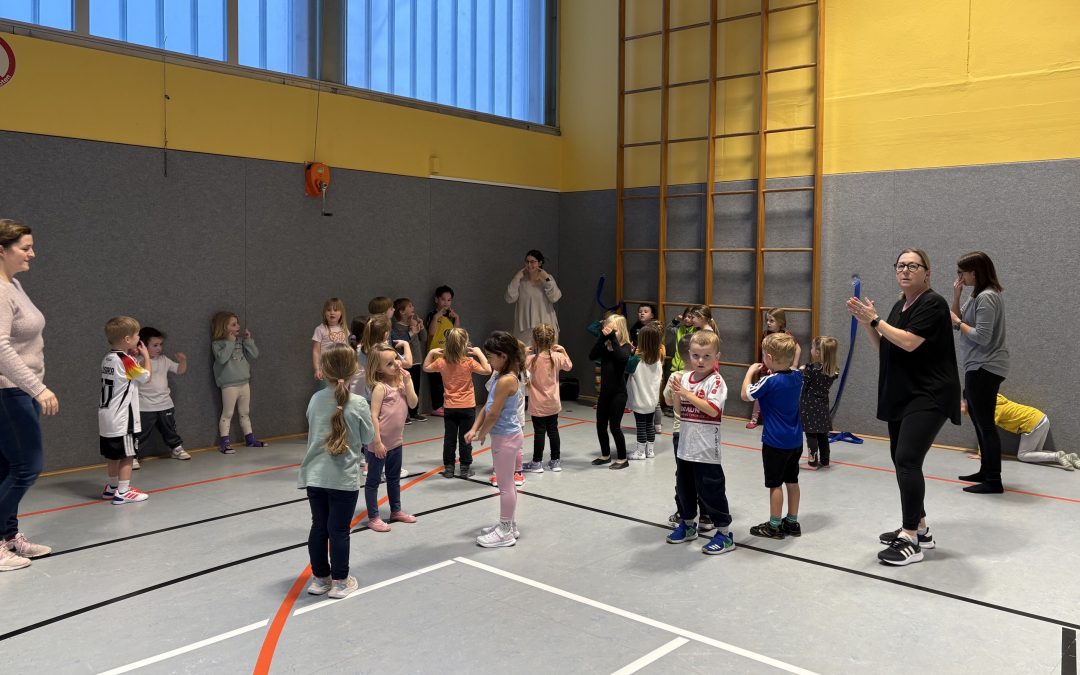 Mit 58 Jahren steckt sie voller Energie und Begeisterung: Unsere Trainerin für „Kinder in Bewegung“ betreut und trainiert Kinder im Alter von 4 bis 6 Jahren – und das mit großem Erfolg. Die Gruppe ist sehr gut besucht, regelmäßig nehmen zwischen 35 und 50 Kinder am Training teil. Um eine optimale Übungsstunde zu gewährleisten, sind stets drei bis vier Helferinnen und Helfer im Einsatz.